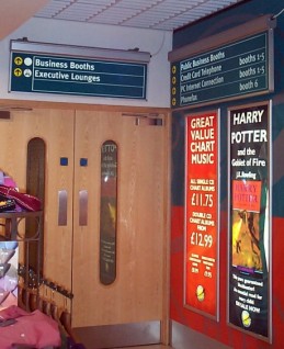 At our local Airport Gatwick we have done work for British Airways for their Lounges, offices and Hanger Signs. We supplied and fitted signs for the Virgin Nigeria Ticket Desk and supplied signs for their check-in Desks.
