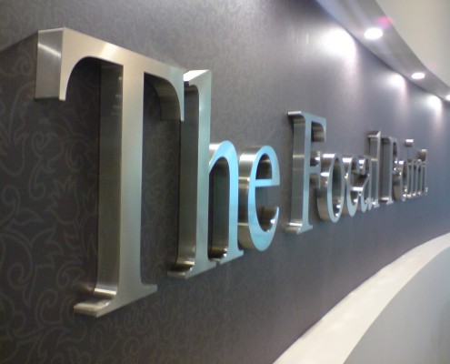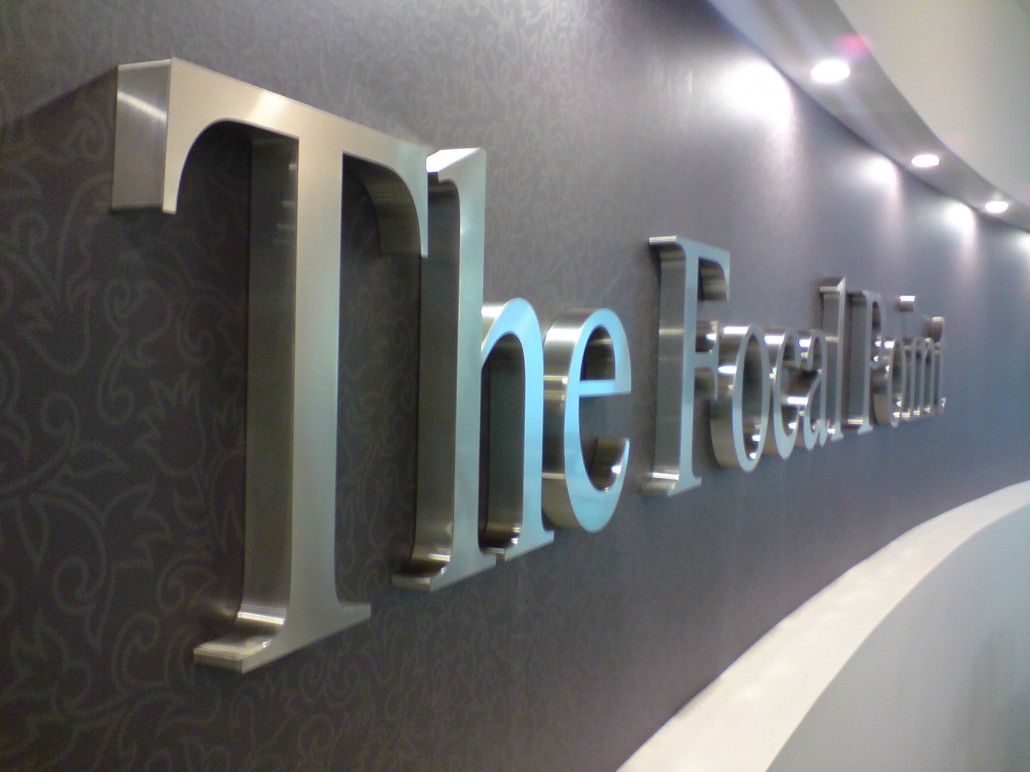 We supply and fit bespoke flat cut letters studded off the wall, Built up acrylic letters in numerous colours and sizes, Metal letters: flat cut brushed Stainless steel and Polished built up letters.