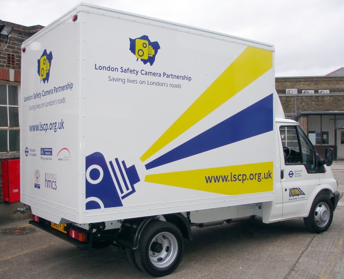 As London Undergrounds primary sign supplier, we were contacted by the London Camera Safety Partnership to suggest materials and colours for their new Vivaro vehicle fleet. These vehicles are used for mobile speed enforcement. For the window panels we used printed contravision which enables the occupant to see out of the window and for the rest of the vehicle blue and yellow self adhesive vinyl.