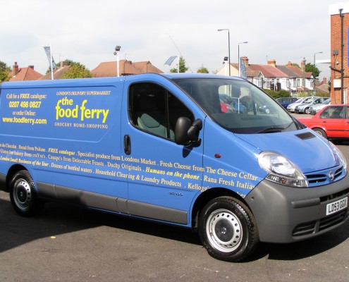 London’s mobile supermarket the food ferry who specialise in quality foods as well as your day to day items purchased 8 new Nissan Primastar from Chelsea Lease. On recommendation we met with the customer and discussed various layouts that would deliver the required impact. The vehicles had product information wrapped around the entire body and contact details on the upper panels all in yellow vinyl.
