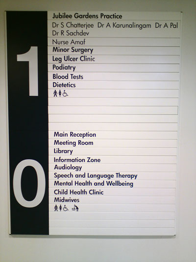 Once visitors have entered the building it is important that they are properly informed and directed towards the relevant service. Our Internal Primary Care Trust Signs follow strict guidelines and procedures in order to ensure that they display clear, legible information that is easy to read and understand and provides people with a clear sense of direction.